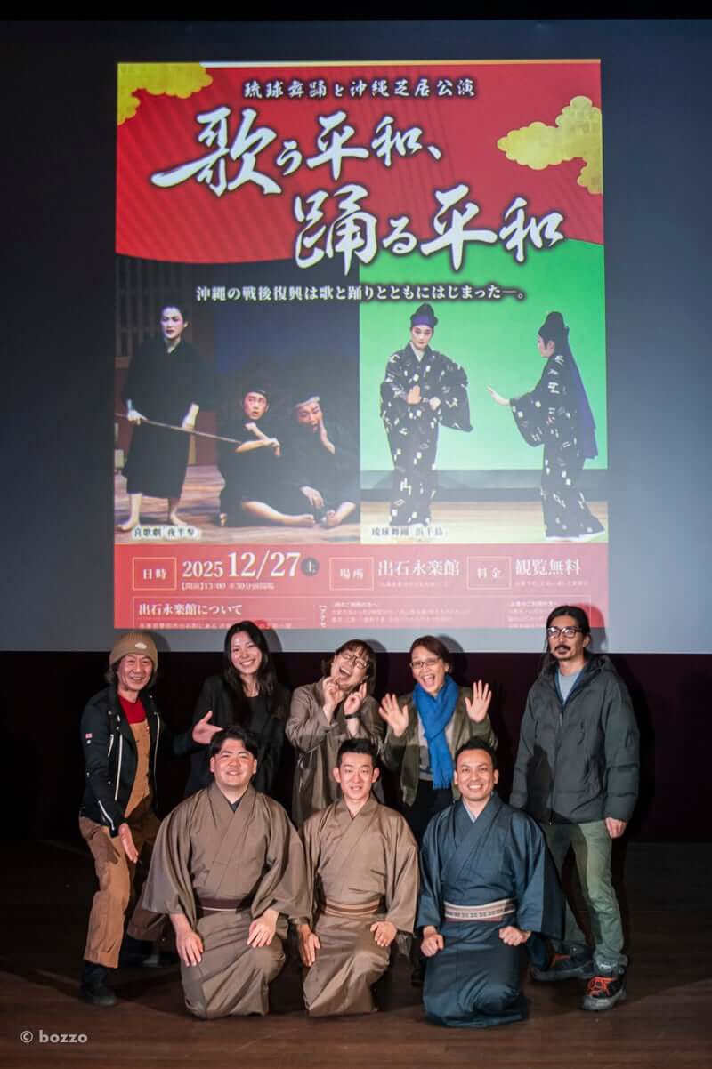 戦争で多くを失った沖縄。途方もない喪失の中で、人々を支えたのが歌と踊りでした。役者たちは「公務員」として県内を巡り、芸能を届けました。本公演では、琉球舞踊と沖縄芝居を通じて沖縄の戦後復興と芸能の歩みをたどります。トークセッションでは、YouTuberリュウカツチュウが兵庫と沖縄のつながりや、芝居小屋文化と芸能の関わりについて語ります。戦後80年、平和への願いを込めて—。